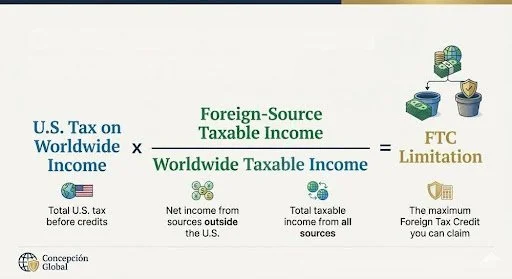 FTC Limitation = U.S. tax liability × (Foreign-source taxable income ÷ Worldwide taxable income)